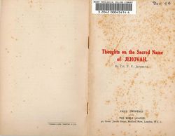 Jeffreys, F.Thoughts on the sacred name of Jehovah / by Col. F. V. Jeffreys. Retrieved from the Atla Digital Library, https://archives.moore.edu.au/documents/detail/26865.