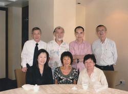 Top row: Tan Loy Jin, Michael Ong, Low Eng Chong, Loh Hoe Peng, bottom row: Mrs. Tan, Mrs Ong, Mrs Loh (lunch on 27.09.2011 at Peach Garden Restaurant, 33rd level OCBC before visitor Low Eng Chong return to Melbourne on 29.09.2011)