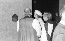 Photographs of the opening of St Andrew's House by the Governor of NSW, Sir Roden Cutler, with Lady Cutler and Archbishop Marcus Loane.