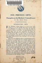 Five precious gifts: Thoughts on the Mother's Union Prayer / By Mrs. Horace Porter. Retrieved from the Atla Digital Library, https://archives.moore.edu.au/documents/detail/208892.