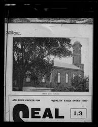 Photograph on page of publication - Old St James' Cathedral (Melbourne) - advertisement for Seal underneath. Digitised from a quarter-plate glass negative.