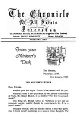 All Saints' Church (Petersham, N.S.W.).The Chronicle of the Parish All Saints' Petersham 1983 February. All Saints' Church (Petersham, N.S.W.). 1983. Retrieved from the Atla Digital Library, https://archives.moore.edu.au/documents/detail/93981.