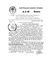Church Women, Australian.Acw News 1986 11 November. Australian Church Women. 1986. Retrieved from the Atla Digital Library, https://archives.moore.edu.au/documents/detail/147825.