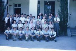 Bathurst, Leaders and Counsellors. (bottom row: ?, ?, late Han Chow Fong {marine biologist}, Bill Lim, Dr Han Ping, Dr David Tao, Stanley, Lee Kong Chen) (lady middle row, rightmost, Shirley Bayat, IFES staff worker), (lady middle row, second from right, Gwen Steward, IFES staff worker), (Dudley Foord middle. His wife to his right), (lady middle row, leftmost, Ruth, IFES staff worker), (james Wong, man to the top left, second from the left), (Bill Laird, man on top row, 6th from the left), (top row, 8th from the left, Bill Lim's wife, Lee), (top left, Kim Bew), (third man from top right, Michael Ng)