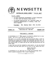Church Women - NSW unit, Australian.Newsette 42 1990 February. Australian Church Women. 1990. Retrieved from the Atla Digital Library, https://archives.moore.edu.au/documents/detail/147092.