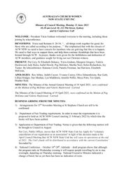 Church Women - NSW unit, Australian.Minutes of Council Meeting 21 June 2021. Australian Church Women. 2021. Retrieved from the Atla Digital Library, https://archives.moore.edu.au/documents/detail/143239.