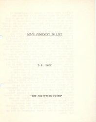 Knox, D. B. (David Broughton) (1916-1994). God's Judgement In Life. . 1978. Retrieved from the Atla Digital Library, https://archives.moore.edu.au/documents/detail/201174.
