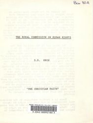 Knox, D. B. (David Broughton) (1916-1994). The Royal Commission On Human Rights. . 1978. Retrieved from the Atla Digital Library, https://archives.moore.edu.au/documents/detail/9706.
