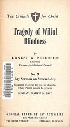Peterson, Ernest W. (1894-1963). Tragedy of Wilful Blindness. General Board of Lay Activities. 1947. Retrieved from the Atla Digital Library, https://archives.moore.edu.au/documents/detail/271894.