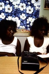 Society Australia, Bible.Translation Assistants for the Kunwinjku Language Mrs Dolly Maralngurra (l) Mrs Lois Namaruyilk Record Cassettes for a Tape Ministry At Oenpelli Nt. Retrieved from the Atla Digital Library, https://archives.moore.edu.au/documents/detail/135202.