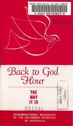 The Way it Is: Denominational Broadcast of / the Reformed Churches of Australia. Sydney: Bible Society in Australia.. 1980. Retrieved from the Atla Digital Library, https://archives.moore.edu.au/documents/detail/207802.