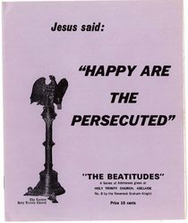 Knight, Graham Stephen.Jesus Said: "happy Are the Persecuted" / by Graham Knight. Adelaide : Trinity Pub. Society.. Retrieved from the Atla Digital Library, https://archives.moore.edu.au/documents/detail/129764.