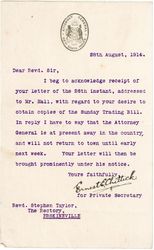 Chittick, E. (1914). Ernest Chittick letter to Stephen Taylor. Retrieved from the Atla Digital Library, https://archives.moore.edu.au/documents/detail/213580.