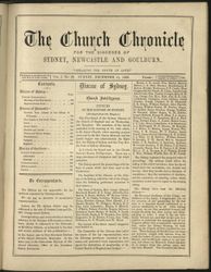 of England, Church.The Church Chronicle for the Dioceses of Sydney, Newcastle and Goulburn - Vol. 1 No. 23 December 11 1866. J. Cook and Co., Sydney. 1866. Retrieved from the Atla Digital Library, https://archives.moore.edu.au/documents/detail/31707.