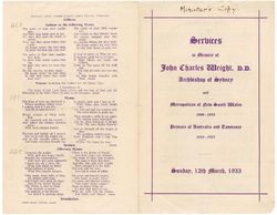 Church of Australia - Diocese of Sydney, A. (1933). Services in memory of John Charles Wright. Retrieved from the Atla Digital Library, https://archives.moore.edu.au/documents/detail/213612.