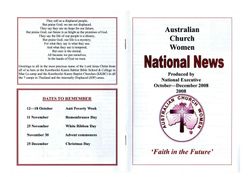 Church Women, Australian.Acw News 2008 10 October. Australian Church Women. 2008. Retrieved from the Atla Digital Library, https://archives.moore.edu.au/documents/detail/148328.