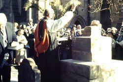 Thurling, John. St Stephen's Newtown, Archbishop Gough Dedicating New Wall, 19/8/61. Church of England Historical Society (Diocese of Sydney). 1961. Retrieved from the Atla Digital Library, https://archives.moore.edu.au/documents/detail/106233.