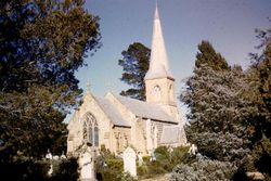 Bates, Joan. St John's Canberra Exterior 14/10/59. Church of England Historical Society (Diocese of Sydney). 1959. Retrieved from the Atla Digital Library, https://archives.moore.edu.au/documents/detail/111723.
