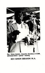 , Unidentified.Rev Simon Ibrahim, M.a., Executive Secretary of Ecwa, Addressed Billiri "jubilee" Meeting. Australian Church Record. Retrieved from the Atla Digital Library, https://archives.moore.edu.au/documents/detail/34045.