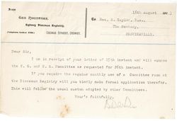 Church of Australia - Diocese of Sydney, A. (1913). Diocesan Registry letter to Stephen Taylor. Retrieved from the Atla Digital Library, https://archives.moore.edu.au/documents/detail/213578.