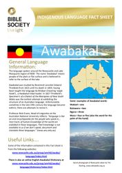 Society Australia, Bible. Awabakal Fact Sheet. Bible Society Australia. 2012. Retrieved from the Atla Digital Library, https://archives.moore.edu.au/documents/detail/138502.