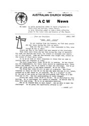 Church Women, Australian.Acw News 1987 4 April. Australian Church Women. 1987. Retrieved from the Atla Digital Library, https://archives.moore.edu.au/documents/detail/147854.