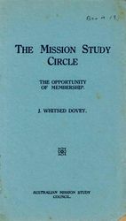 Dovey, J. Whitsed.The Mission Study Circle : the Opportunity of Membership / J. Whitsed Dovey. Melbourne : Australian Mission Study Council.. 1914. Retrieved from the Atla Digital Library, https://archives.moore.edu.au/documents/detail/26424.