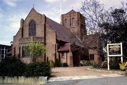 Thurling, John. St Andrew's Wahroonga, Exterior, 30/10/66. Church of England Historical Society (Diocese of Sydney). 1966. Retrieved from the Atla Digital Library, https://archives.moore.edu.au/documents/detail/120090.