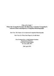 Buch, Neville.Clio Or St Luke? When the Evangelist Becomes the Historian: A Former Evangelical's Concerns about Contemporary Evangelical Historiography. 1993. Retrieved from the Atla Digital Library, https://archives.moore.edu.au/documents/detail/99382.