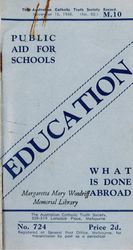 Corcoran, Tom. Public Aid to Religious Schools Overseas. Melbourne : Australian Cathiolic Truth Society.. 1936. Retrieved from the Atla Digital Library, https://archives.moore.edu.au/documents/detail/126232.