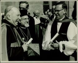 Photography Australia, Church, and Australian Church Record. Cardinal Norman Gilroy, Archbishop Marcus Loane and an Orthodox Priest. Retrieved from the Atla Digital Library, https://archives.moore.edu.au/documents/detail/249488.