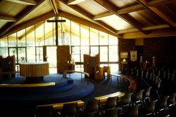 Thurling, J. (1974). St John the Evangelist Coffs Harbour, interior, 23/3/74. Retrieved from the Atla Digital Library, https://archives.moore.edu.au/documents/detail/120561.