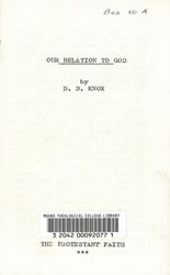 Knox, D. (1967). Our relation to God. Retrieved from the Atla Digital Library, https://archives.moore.edu.au/documents/detail/9370.