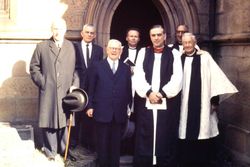 , Unidentified. St Stephen's Newtown, Group At Vestry Door, 19/8/61. Church of England Historical Society (Diocese of Sydney). 1961. Retrieved from the Atla Digital Library, https://archives.moore.edu.au/documents/detail/106398.
