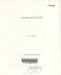 Knox, D. (1964). God's word alone infallible. Retrieved from the Atla Digital Library, https://archives.moore.edu.au/documents/detail/9339.