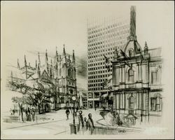 Church Record, Australian.Sketch of St Andrew's Cathedral and Courtyard. Australian Church Record. 1963. Retrieved from the Atla Digital Library, https://archives.moore.edu.au/documents/detail/33366.