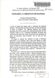 Tillyer, Desmond. Towards a Christian Humanism / The Revd Desmond Tillyer. England : Mainstream.. 1992. Retrieved from the Atla Digital Library, https://archives.moore.edu.au/documents/detail/198894.