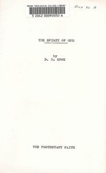 Knox, D. B. (David Broughton) (1916-1994). The Spirit of God. . 1969. Retrieved from the Atla Digital Library, https://archives.moore.edu.au/documents/detail/8404.