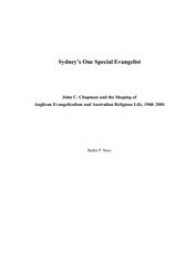 Stace, Baden P. Appendices to 'sydney's One Special Evangelist: John C. Chapman and the Shaping of Anglican Evangelicalism and Australian Religious Life, 1968-2001'. Baden P. Stace. 2022. Retrieved from the Atla Digital Library, https://archives.moore.edu.au/documents/detail/135537.