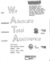 Australian Temperance Alliance, West.We Advocate Total Abstinence. West Australian Temperance Alliance. Retrieved from the Atla Digital Library, https://archives.moore.edu.au/documents/detail/273548.