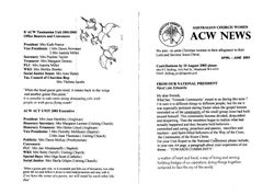 Church Women, Australian.Acw News 2003 4 April. Australian Church Women. 2003. Retrieved from the Atla Digital Library, https://archives.moore.edu.au/documents/detail/148285.