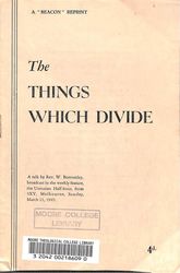 Bottomley, William. The Things Which Divide. Melbourne : Beacon Press. 1945. Retrieved from the Atla Digital Library, https://archives.moore.edu.au/documents/detail/269139.