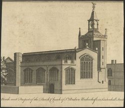 , U.121. North west prospect of the Parish Church of St Andrew Undershaft, in Leadenhall Street. Retrieved from the Atla Digital Library, https://archives.moore.edu.au/documents/detail/20972.