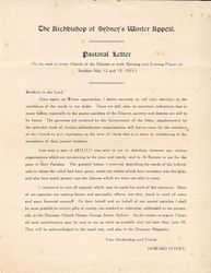 Mowll, Howard West Kilvinton (1890-1958). The Archbishop of Sydney's Winter Appeal: Pastoral Letter. Anglican Church of Australia Diocese of Sydney. 1935. Retrieved from the Atla Digital Library, https://archives.moore.edu.au/documents/detail/99337.