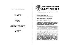 Church Women, Australian.Acw News 2001 5 May. Australian Church Women. 2001. Retrieved from the Atla Digital Library, https://archives.moore.edu.au/documents/detail/148272.