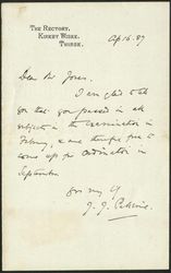 Jones, N., & Paliene, J. (1887). Letter from J.J. Paliene, The Rectory, Kirkby Wiske, Thirsk (Yorkshire). Retrieved from the Atla Digital Library, https://archives.moore.edu.au/documents/detail/25396.