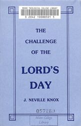Knox, J. Neville.The Challenge of the Lord's Day. London: The Lord's Day Observance Society. Retrieved from the Atla Digital Library, https://archives.moore.edu.au/documents/detail/271228.