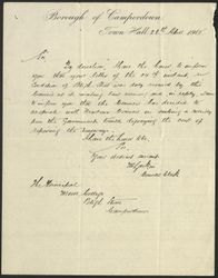 Jones, Nathaniel (1861-1911), and W Larkin. Letter From W. Larkin, Council Clerk, Borough of Camperdown. . 1905. Retrieved from the Atla Digital Library, https://archives.moore.edu.au/documents/detail/25449.