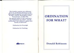 Robinson, Donald William Bradley (1922-2018). Ordination for What. Retrieved from the Atla Digital Library, https://archives.moore.edu.au/documents/detail/132610.