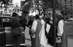 Photographs of the opening of St Andrew's House by the Governor of NSW, Sir Roden Cutler, with Lady Cutler and Archbishop Marcus Loane. Black and white positive prints
